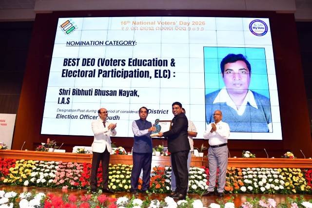 ବୌଦ୍ଧ,୨୮/୧ : ୧୬ତମ ଜାତୀୟ ମତଦାତା ଦିବସ–୨୦୨୬ ଅବସରରେ ବୌଦ୍ଧ ଜିଲ୍ଲାପାଳ ଓ ଜିଲ୍ଲା ନିର୍ବାଚନ ଅଧିକାରୀ ଶ୍ରୀ ବିଭୂତି ଭୂଷଣ ନାୟକ, ଆଇଏଏସ୍ଙ୍କୁ SVEEP କାର୍ଯ୍ୟକ୍ରମ ଓ ଇଲେକ୍ଟୋରାଲ ଲିଟରେସି କ୍ଲବ (ELC ) କ୍ଷେତ୍ରରେ ଉତ୍କୃଷ୍ଟ କାର୍ଯ୍ୟ ପାଇଁ ଶ୍ରେଷ୍ଠ DEO ଭାବେ ସମ୍ମାନିତ କରାଯାଇଛି।