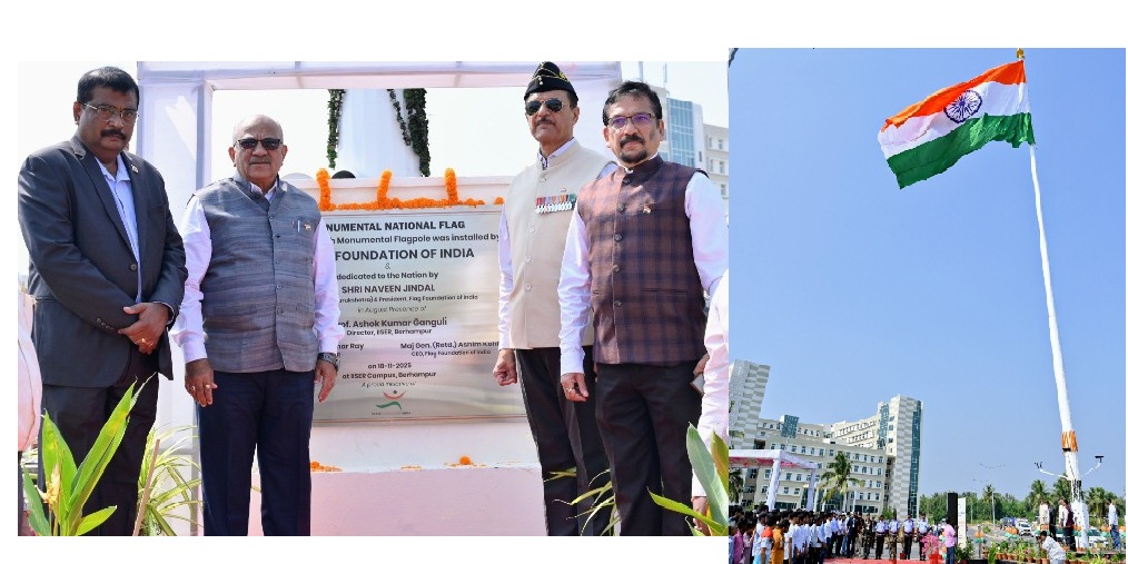 Bhubaneswar, Nov.18 : In a proud moment to celebrate patriotism and national pride, a 108 ft monumental national flagpole was inaugurated at Indian Institutes of Science Education and Research (IISER), Berhampur campus. The flagpole, installed by Flag Foundation of India, was inaugurated by Prof. Ashok Kumar Ganguli, Director IISER, in the presence of Shri Prashant Kumar Hota, President & Group Head (CSR & Education), Jindal Steel; Maj Gen Ashim Kohli (Retd), CEO Flag foundation of India and Shri Pradeep Kumar Ray, Registrar, IISER, Berhampur.