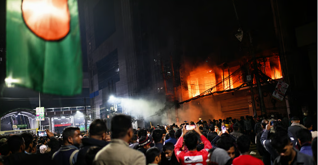 Thousands of protesters poured onto the streets of Dhaka after news of the 32-year-old activist’s death, demanding the arrest of his killers. Several buildings, including offices housing the country’s two leading newspapers, were set on fire, trapping journalists and staff inside, authorities said.