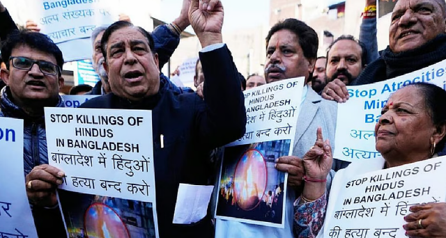 A protest in India against the attacks on Hindus in Bangladesh.