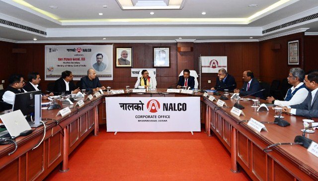 During his maiden visit to NALCO Headquarters after assuming charge as Secretary, Ministry of Mines, Govt of India, Shri Goyal chaired a review meeting in the presence of Shri Brijendra Pratap Singh, Chairman-cum-Managing Director, NALCO. He reviewed the Company’s ongoing expansion initiatives and operational performance. The meeting was attended by members of the NALCO Board, Shri Pankaj Kumar Sharma, Director (Production), Shri Jagdish Arora, Director (Projects & Technical), Dr Tapas Kumar Pattanayak, Director (HR), Shri Abhay Kumar Behuria, Director (Finance), along with other senior officials.