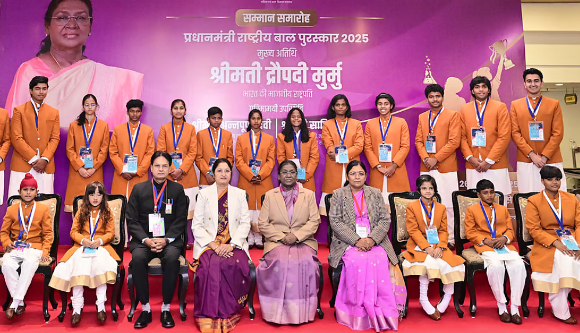 NEW DELHI, DEC 26 : President Droupadi Murmu on Friday conferred the Pradhan Mantri Rashtriya Bal Puraskar to 20 children for their exceptional achievements in the fields of Bravery, Social Service, Environment, Sports, Art & Culture and Science & Technology at a ceremony held in New Delhi. Speaking on the occasion, she congratulated the recipients […]Continue Reading