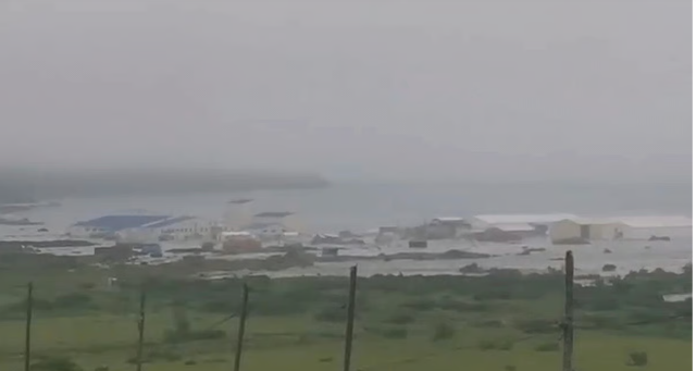 A port in Severo-Kurilsk, on the Kuril Islands in the Pacific, was flooded after a tsunami wave hit the area.