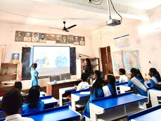 The initiative equips institutions with comprehensive digital learning ecosystems that include android-based smart classrooms, projectors, curated STEM learning kits, models, libraries, and interactive classroom displays. Further, these are supported by solar powered inverter systems that ensure uninterrupted digital access despite rural power constraints. This intervention has led to improved classroom environments with higher student engagement through hands on STEM learning opportunities. It has also equipped educators with structured digital aids leading to engaging classroom interactions and better learning outcomes.