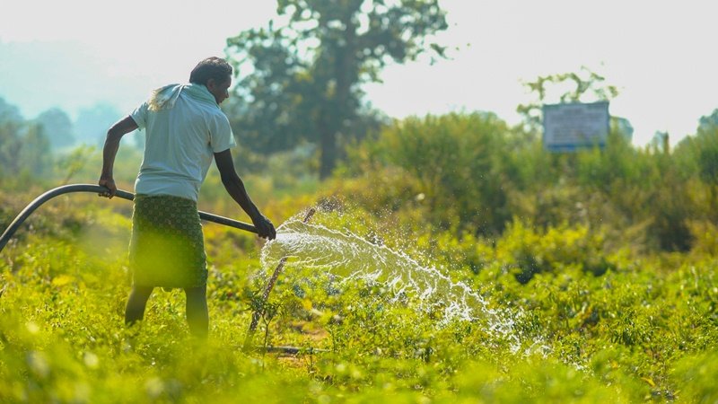 Photograph: A farmer in Balabhadrapur village of Kalahandi district irrigates his farmland using water made available through the integrated watershed initiative.